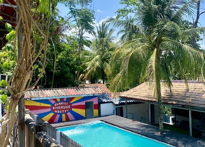 Featuring currency exchange and a tour desk, Sunrise Riverside Pool Hostel is located only a 5-minute walk from Bamboo Bridge. Offering parking on site, the hostel is only a few metres from Mount Phousi.